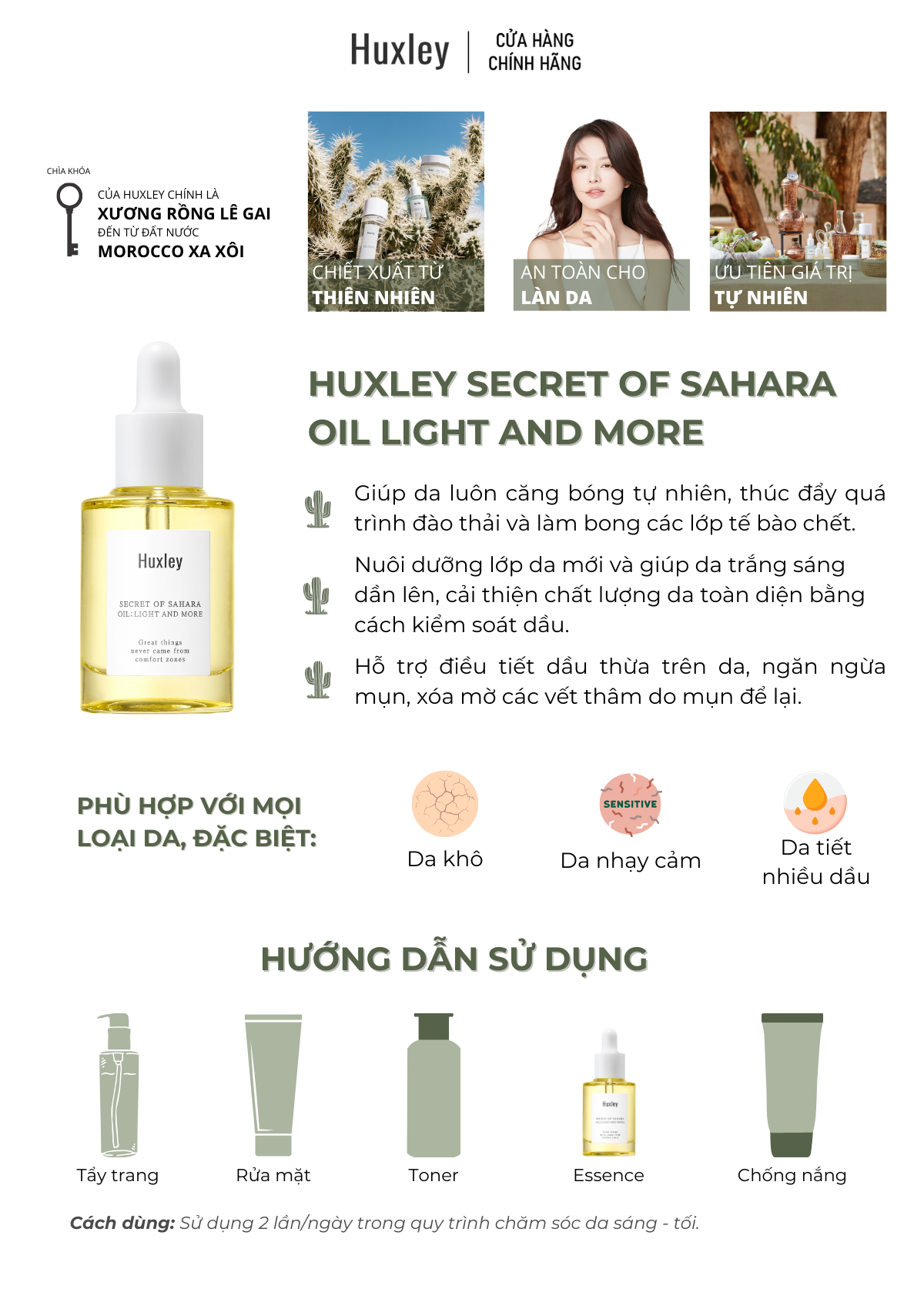 Dưỡng Chất Cấp Ẩm Dưỡng Sáng Da Dịu Nhẹ Huxley Secret Of Sahara Oil Light and More (30ml):